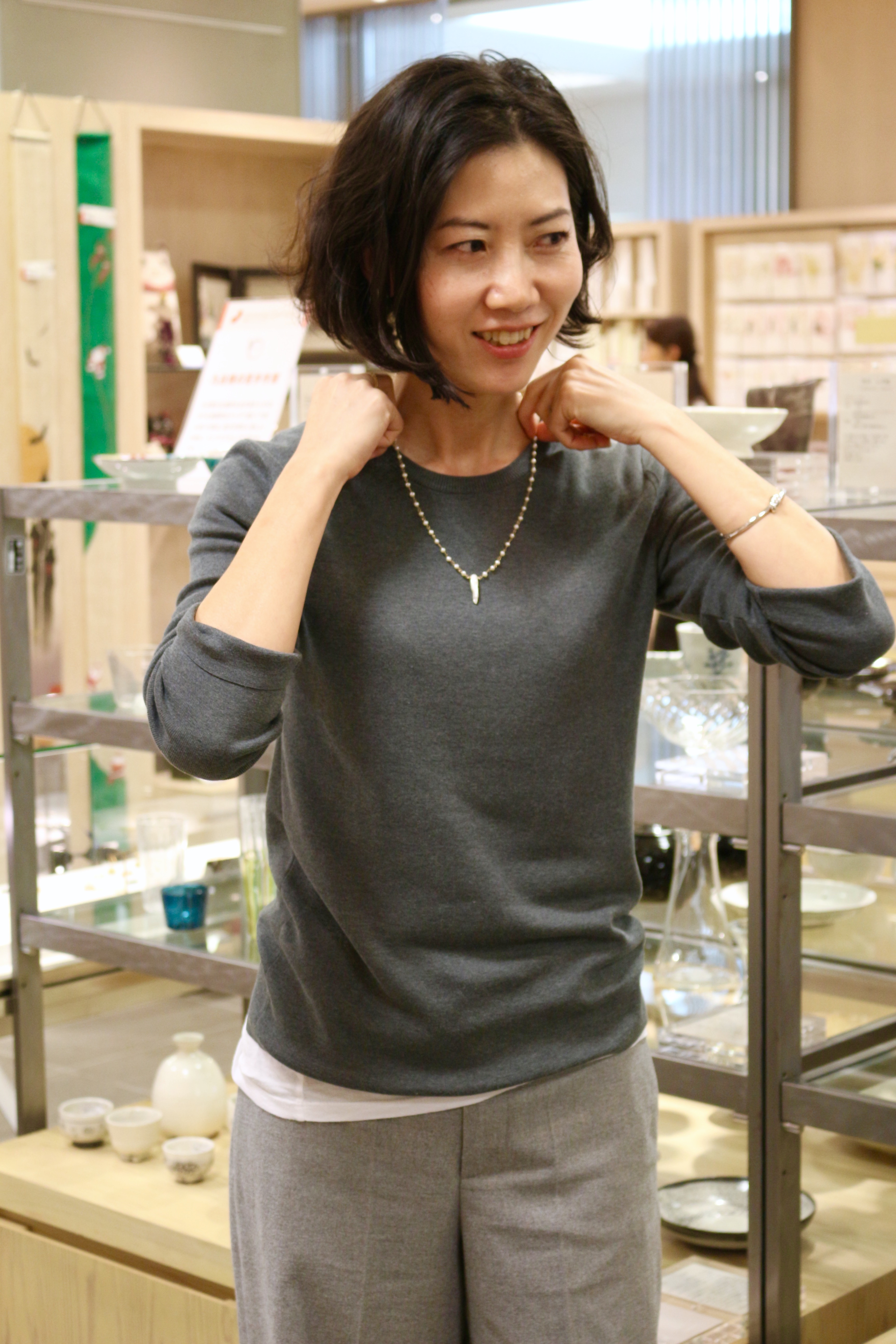 選んでいただいたフープピアスは今日のスタイルにもぴったりですね。